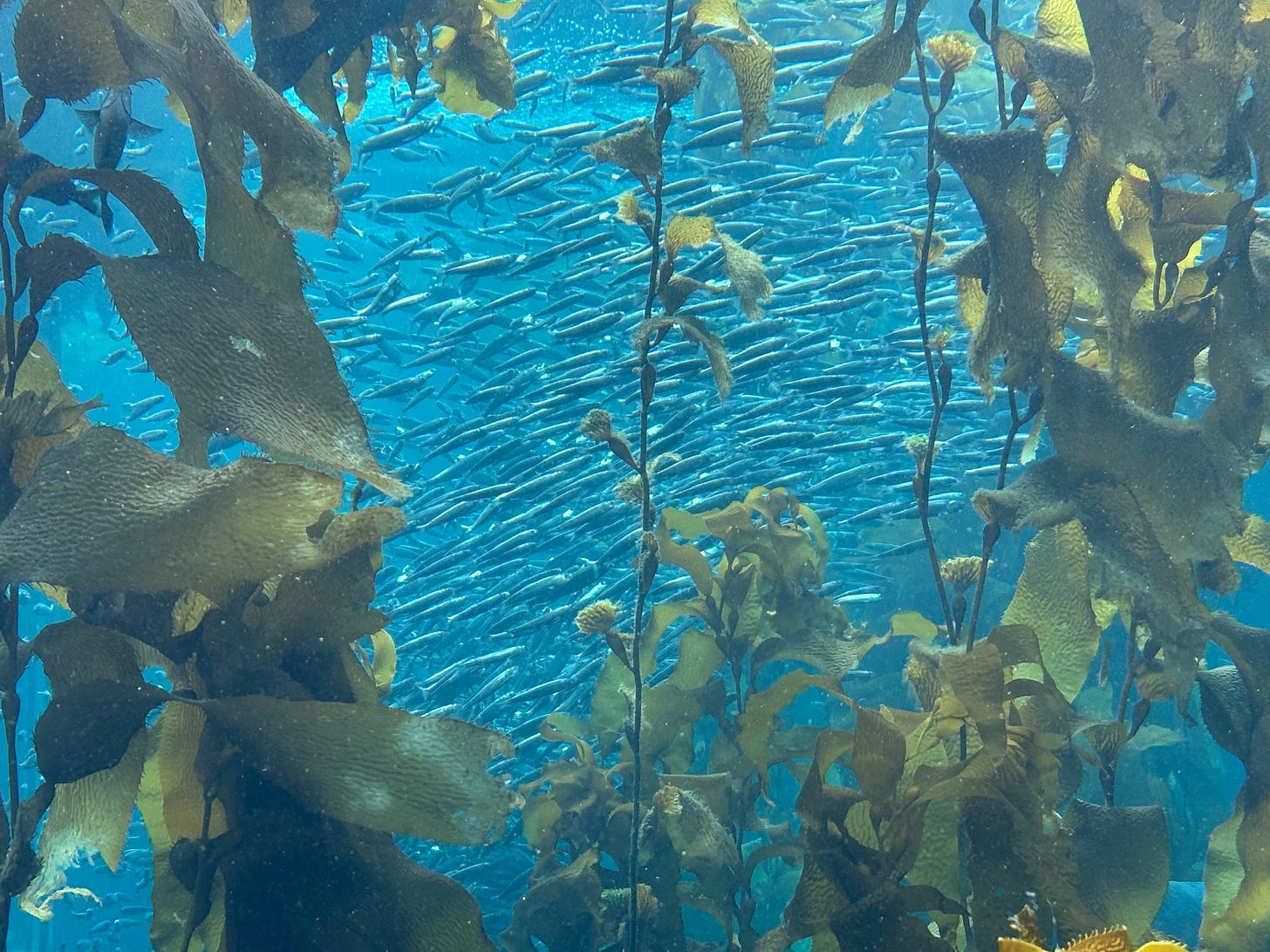 In August, the current briefly led us back to the aquarium where I happily spent 45 minutes in thrall to the kelp forest. My breath slowed. My brain stopped racing. I was the kelp, swaying with the current. I was the rock fish suspended in its watery universe. I was the dazzling school of sardines zigging and zagging between beams of sunlight.